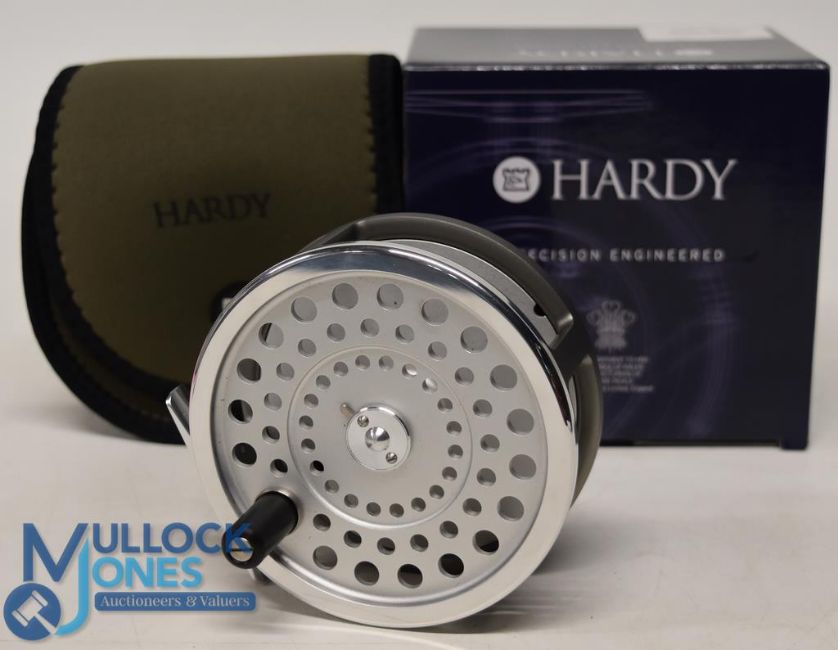 Hardy Marquis No2 salmon fly reel 4 1/8" - backplate drag adjuster, smooth alloy foot. New and unused with papers, Hardy neoprene case and outer box