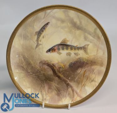 A Royal Doulton Painted Plate, decorated American Char fish, signed J Birbeckson, 24 cm diameter with David Cullamore & Co New York retail stamp to back, fair condition some signs of rubbing to plate
