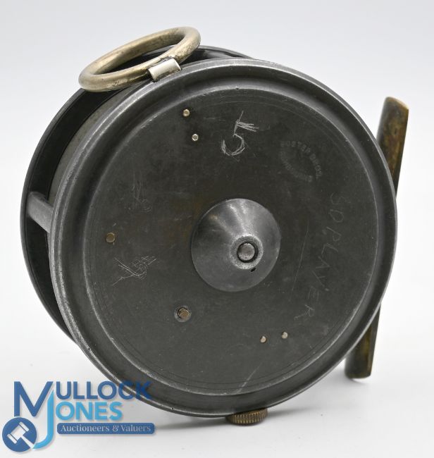 Fosters of Ashbourne by Dingley, 4" Scarsdale alloy salmon fly reel, nickel O ring line guide, smooth brass foot, rim tension regulator, internally stamped 5, good original finish
