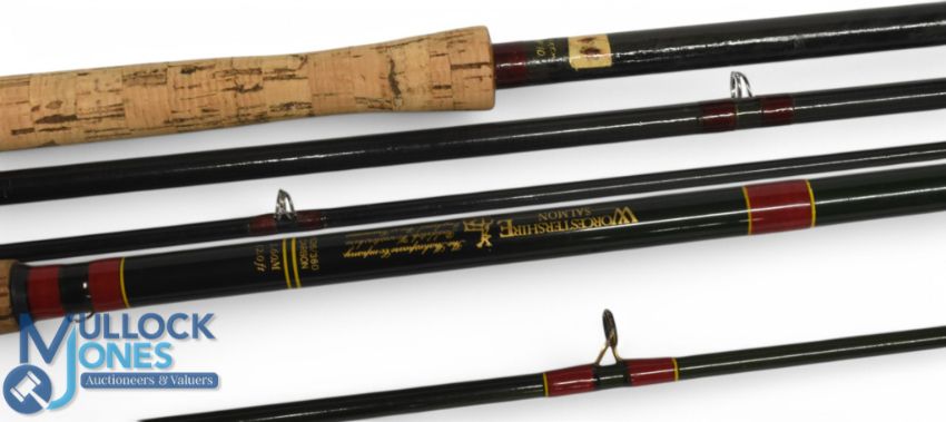 Shakespeare Worcestershire salmon carbon spinning rod 1526/360 12ft 2pc 27" handle, uplocking reel seat, lined rings throughout, cloth bag. Unnamed carbon salmon fly rod 15ft 3pc line 10#, 27" handle, alloy sliding reel fittings, lined butt/tip rings, cloth bag. (2)