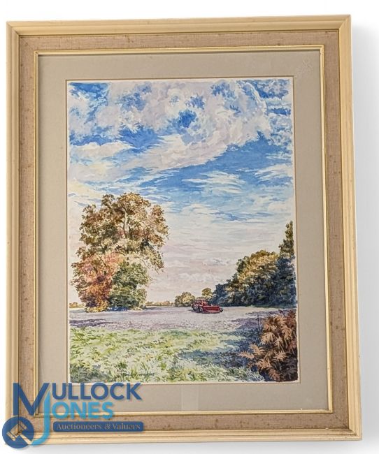 Original Fishing Watercolour by Bernard Venables, an agricultural scene with field tractor harvesting - farmed and mounted under glass #47cm x 58cm