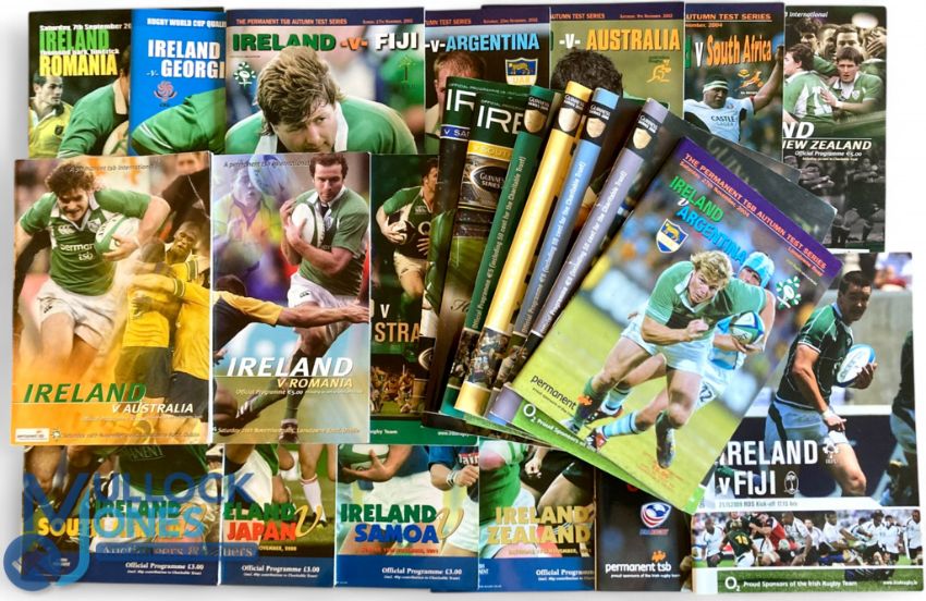 2000 onwards, Ireland v All-Comers Rugby Programme Selection (24): Collection of large glossy modern issues v the likes of Australia, S Africa, Romania, Fiji, Japan, Georgia, NZ, Argentina, USA & Samoa. Exc
