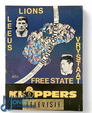 1974 British & I Lions v Orange Free State Rugby Programme: 32pp issue for the Lions' narrow win, full detailed effort. Traces of old gum to rear, o/wise VG