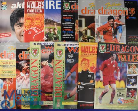 Quantity of Welsh International Football Programmes mainly 2000s (#110) - includes a small selection of tickets, pin badges, cloth badges 'The Red Wall', some early fixtures noted 1969 Wales v German Democratic Republic, 1970 Wales v Northern Ireland, 1971 Wales v Czechoslovakia, 1990 Wales v Belgium etc (Box)