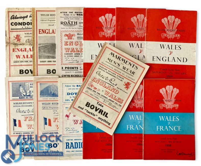 1946-1959 Wales v England & France Rugby Programmes (13): Victory game v England 1946, then full runs in the 5 Nations to the end of the 50s. Mixed but many G