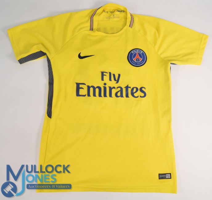 Paris St Germain 2017 away football shirt 'Neymar No 10' to reverse, Nike, Fly Emirates, in yellow, short sleeve, size M with 001114439