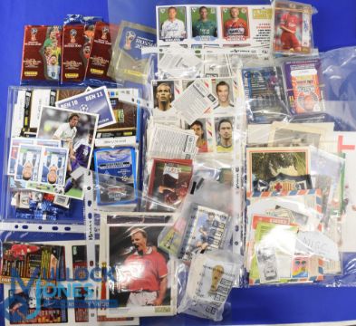 Collection of football trading cards/stickers to include Topps Premier Gold 2002, Match Attax Trading Game, Futera Fans Selection 1999, Panini Euro 2008 Card Game, Merlin Cards, a treasure trove of 100s and 100s of cards with a huge variety of subjects over the years, needs sorting. Good. (1 Box of quantity)