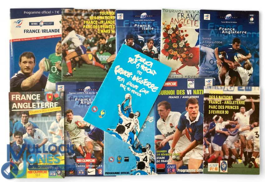 1986-2010 France v England, Italy & Ireland Rugby Programmes (11): England 1986-92 & 1998-2004, both inc; Ireland 1990 & 2010 and Italy 2002. Mostly G