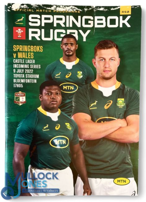Scarce 2022 S Africa v Wales 1st Test Rugby Programme: Final test of three on Wales' 2022 visit, very difficult to source these programmes. Splendid Pretoria example in excellent condition