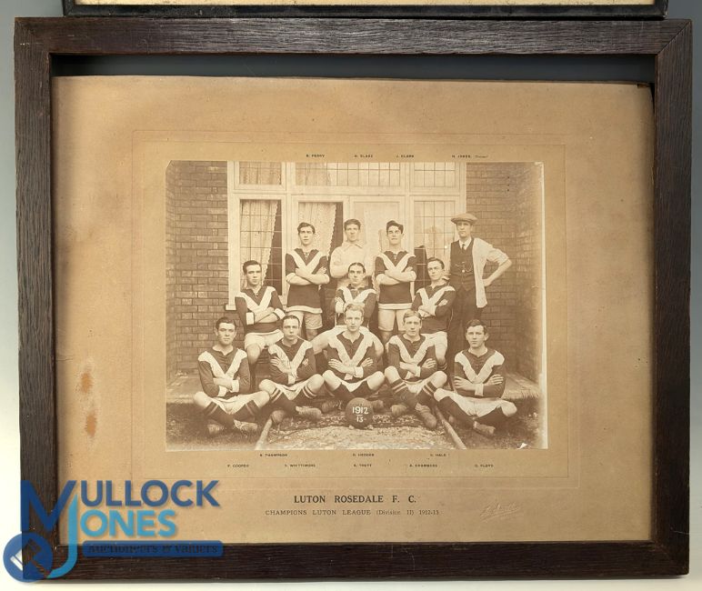 Two Period Football Team Photographs: 1912-13 Luton Rosedale FC Champions, Luton League Division 2 team photograph, a lower boys 1927 school football team photograph, both mounted on card - the largest is 40cm x 50cm
