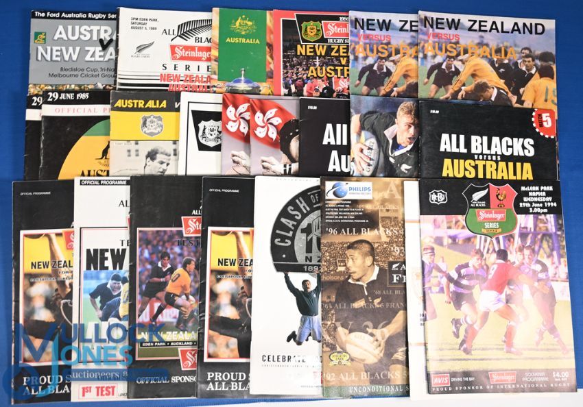 1961-2010 Big NZ Interest Rugby Programme Package (37): France Rugby Tour Programmes in NZ (16): 1961 v Otago & v Nelson Bays etc Combined; 1979 v Waikato; 1984 1st test(2) & v Counties (worn); 1986 the Christchurch test & v N Auckland; & 1989 1st Test(3), v Counties (signed), v Wellington(2) & v Southland; 1994 v Hawkes Bay; & 1999 NZ final test at Wellington; 1992 NZ v a World XV, joint issue for 3 matches, large special for the NZRFU celebrations; plus a host of trans-Tasman clashes, many for the Bledisloe Cup, 1978-2010, inc one in Hong Kong, 2010; plus Southland v Australia 1986. Some duplication. O/wise G/VG