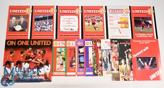 Manchester United FC memorabilia to include: an official Manchester United Fan Club Record, 1960s Newsletters from Vol 1 No 1 (8), There's only One United Newsletters 1974-1988 (34), Supporter Club Newsletters, Handbook 1971/72 and Year Books (25), United magazines (13), Member Brochures (14), Scorecards and Fixtures Cards (5), Programmes and Annual report 1988 (7). Majority in very good condition