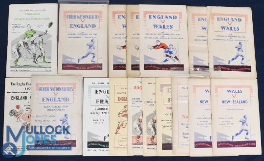 1947-62 England & Other Countries Rugby League Programmes (18): some duplication, E v Wales 1947, 48 and 70; v Other Nationalities 49, 53 and 55; v Fr 62 (and at amateur level, 1958); France v Other Nationalities 51; W v NZ 51; Australia v NZ 1954; and R League XIII v France 1958. Interesting lot, mostly G/VG