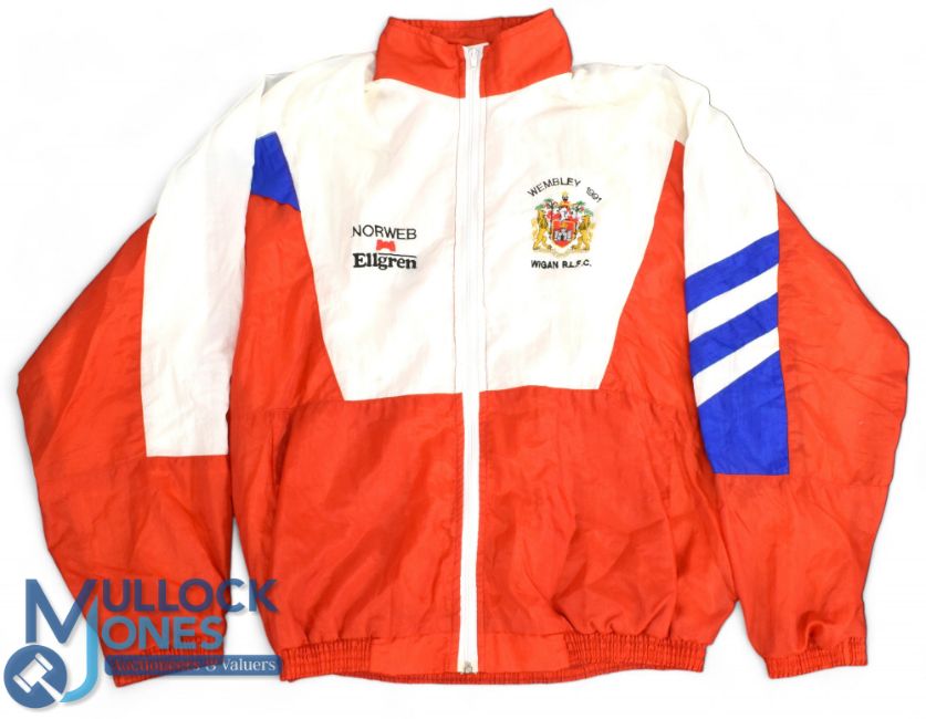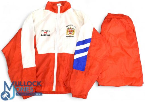 Ellery Hanley Wembley Final full Shell Suit Tracksuit 1991: marvellous, the full red and white tracksuit, fully badged and logoed for the club, makers Ellgreen and sponsors Norweb, worn by the Wigan, England and GB wing legend prior to kick-off in the victorious 1991 R Lge Challenge Cup Final at Wembley. What an opportunity!