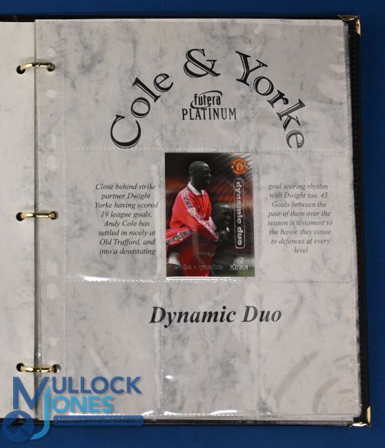 Selection of Manchester Utd memorabilia to include The Futera Platinum Set of Promotional Cards in complete album, 1st Day covers (some with signatures) (7), 1999 Manchester Utd Treble Winners (official photo set), 1990s United magazines (6), 1992/93 United Information Guide; Manchester United Reviewed (for collectors) 1945/46 to 1985/86 (good condition); 1974 History of Manchester United (Pullein), 2003 Worthington Cup final (unofficial fold out type), 1986 United Poster Calendar; also 'Inside Manchester United' official monthly magazine July 2018 to March 2019 (9); good. (A Lot)