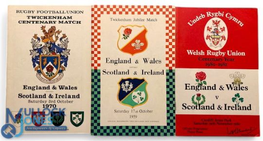 1959, 1970 & 1980 Four Nations Rugby Programmes (3): Twickenham 50th, England Centenary & Wales Centenary Matches. VG