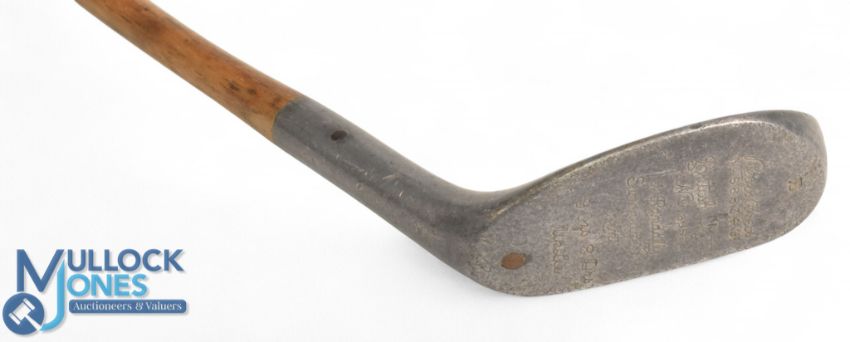 J Randall of Sundridge Park Patent mallet head 'Uplie' model putter showing 11x circular lead weights to the face - with full length grip