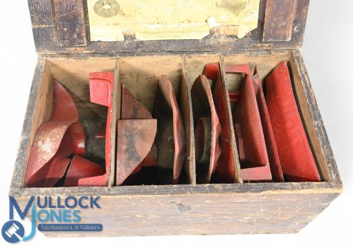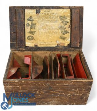 Ardee Bunker Golf Game - in makers original box containing all 10 cast iron hazards and stamped with pat no to the base - the box is a replacement and the lid does not quite shut down