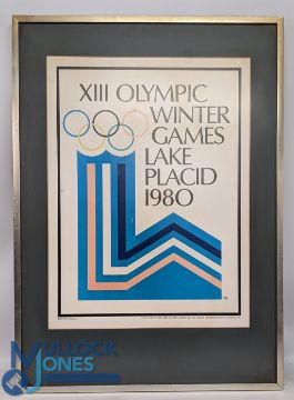 1980 Original Olympic Winter Games Lake Placid Advertising Poster, printed in the USA framed and mounted under glass - size #59cm x 82cm