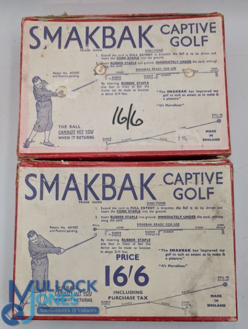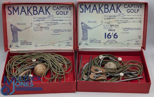 2x Boxed Sets of SmakBak Captive Golf Ball practice aid - in the original makers box with the Smakbak golf ball)