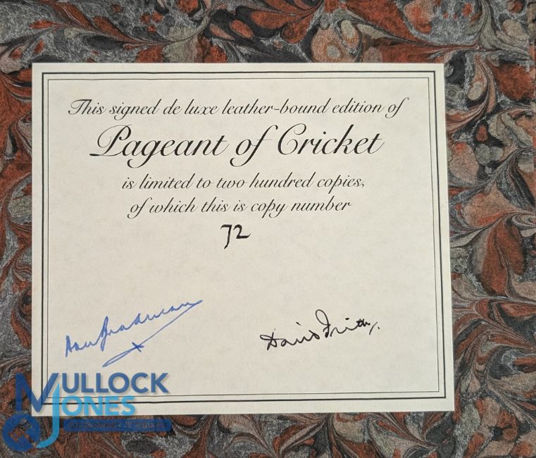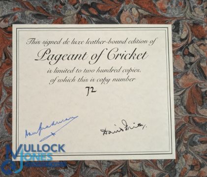 Cricket, Frith David: Pageant of Cricket, London 1987. Deluxe red leather-bound 1929 The Cricketer Magazine bound volume X spring 1929 quarto limited edition No.72/200. Signed by the author and Sir Donald Bradman. Original slip case