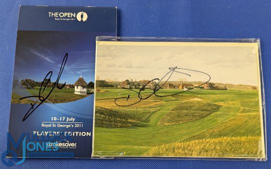 Golf signed Darren Clarke Graham Baxter postcards, with a player's edition 2011, The Open score card, a 1960 signed St Andrews card by Kel Nagle with a signed Kinston Heath Golf Club scorecard, and a personal letter 2011, and a good mixture of golf paperwork. Personally obtained by a professional autograph hunter over many years