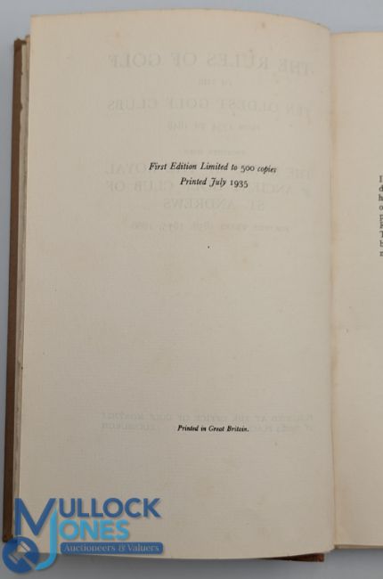 Clapcott, C B - The Rules of Golf of The 10 Oldest Golf Clubs from 1754 - 1848, Together with The Rules of Golf of The Royal and Ancient Golf Club of St Andrews for The years 1858, 1875, 1888" 1st edition 1935 ltd ed to only 500 copies, London and Edinburgh published at The Office of Golf Monthly - in brown cloth and gilt boards and spine, ex private library - uncut edges and minor speckle foxing - some notes and newspaper cuttings added to end pages