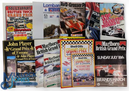 Motor Sport Programme Collection, with examples of British grand prix 1981 and 1983, Grand Prix of Europe 1982, 1985, Monaco Grand Prix 1981, German Grand Prix 1982, Australian Grand Prix 1990, Lombard Rally 1988, British Truck Grand Prix 1985