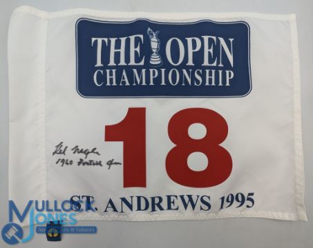 Golf Autograph signed - The Open 1995 18th Pin Flag signed by 1960 Open winner Kel Nagle size #34cm x 47cm. Private Autograph Collection