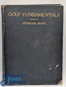 Dunn, Seymour - Golf Fundamentals 1st ed 1930 - Lake Placid and printed privately by the Saratogian Printing Service, Saratoga Springs, NY, c/w illustrations and the original folding chart to the rear, in the original gilt cloth boards and spine showing age related wear - fair used condition