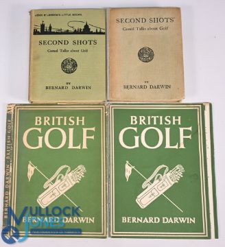 Second Shots - Casual Talks about Golf 1930 hardcover book by Bernard Darwin, two editions of the book plus British Golf book by Bernard Darwin dust jacket only, good-fair condition with some marks, small wear