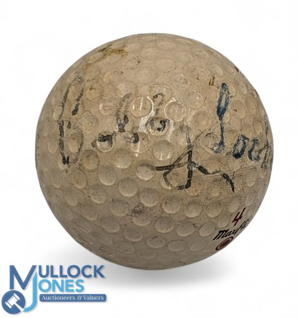 Bobby Locke signed Dunlop No.4 Golf Ball. All signatures personally obtained by a professional autograph hunter over many years