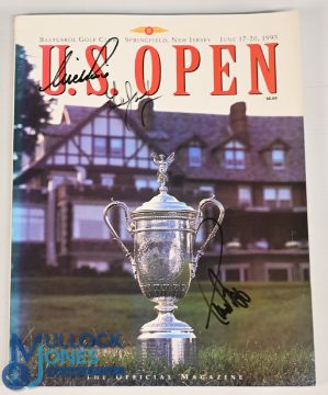 1993 US Open Golf Championship programme signed by Lee Janzen, Paul Azinger and one unknown, good condition with some small paper loss/wear to spine