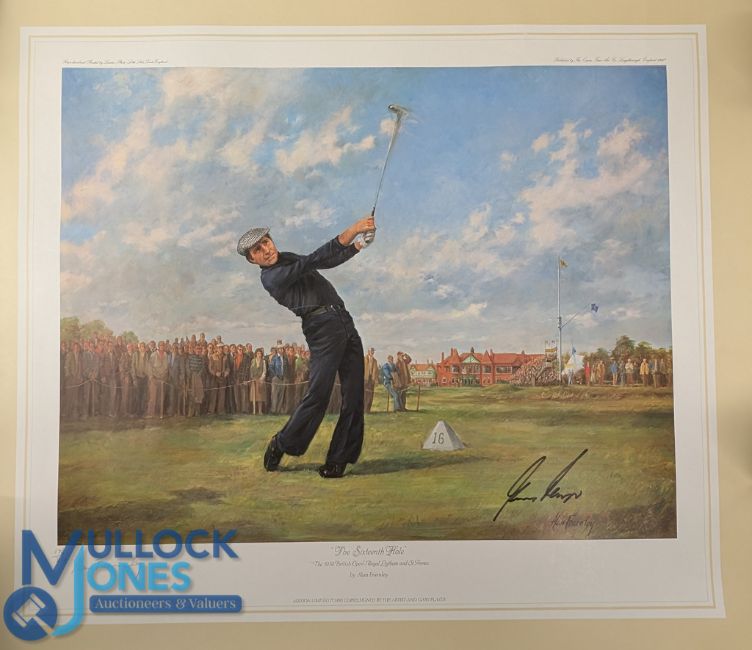Garry Player Signed Golf Print - The Sixteenth Hole 1972 Royal Lytham & St Annes by Alan Fearnley - no.176/850 Bob Charles, kept rolled ready for display - size #54cm x 61cm. Private Autograph Collection
