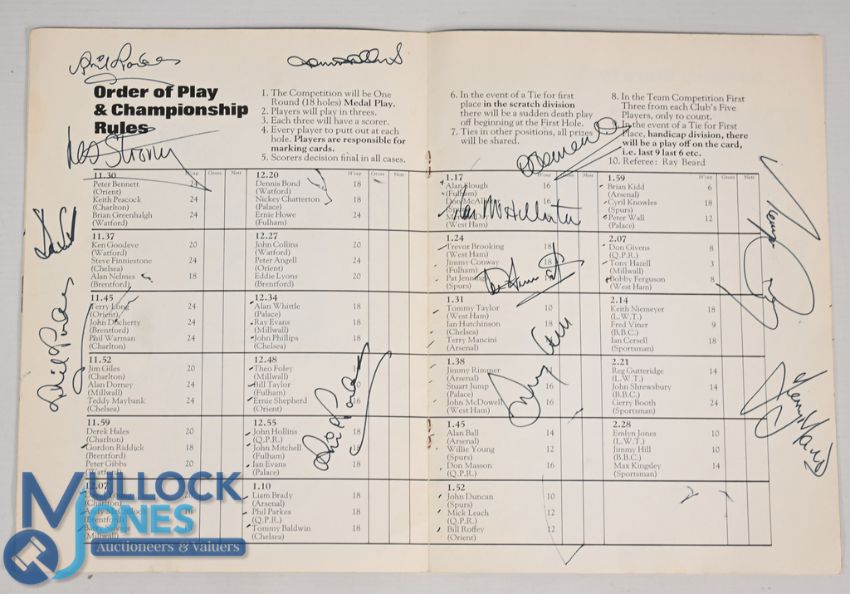 The Sportsman Club London Professional Footballers Golf Championship at Sudbury Golf Club 11/4/1976 with approx. 30 signatures including football players from London teams, good condition