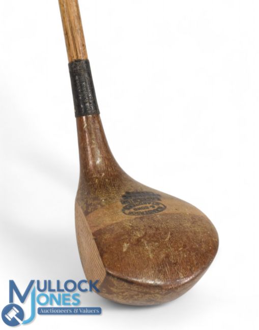 Large Head left hand stripe top driver stamped D Anderson & Son St Andrews Excelsior model fitted with a central brass sole plate - fitted with a full length original hide grip