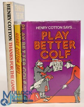 3x Henry Cotton golfing books to include Play Better Golf 1973 and 1962 and Thanks for the Game 1980, very good condition