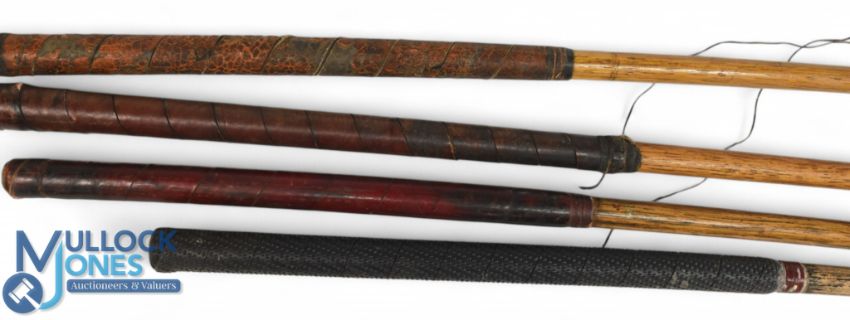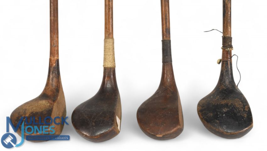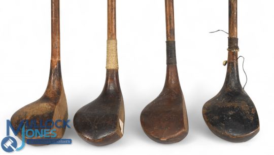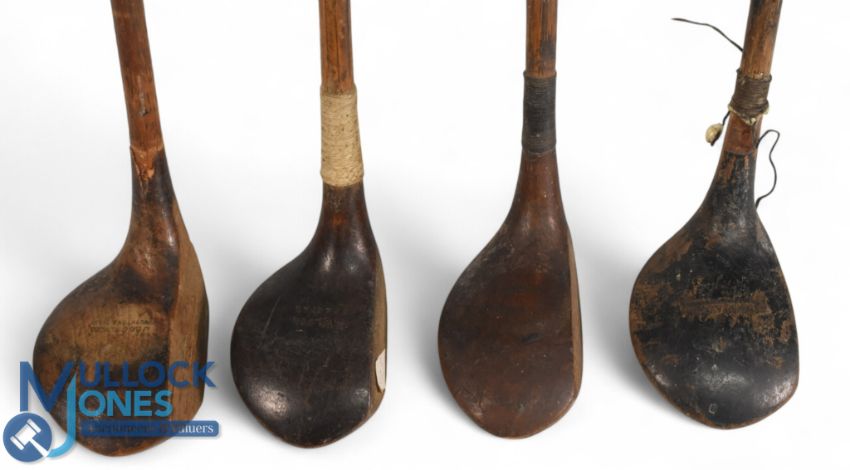 4x Assorted small head socket neck drivers one stamped the Princes, brown stain model showing Wilson to the crown, dark stained driver showing the JH Taylor autograph stamp, and a brown stain high crown lofted driver - all with grips