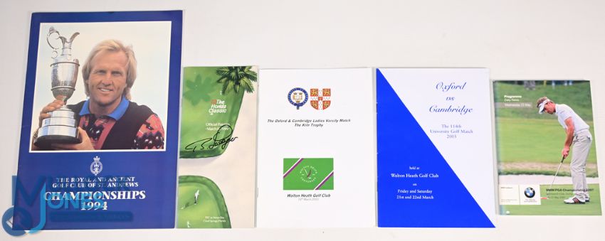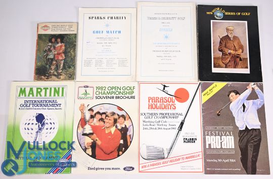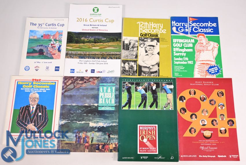 38x Golfing programmes and publications 1966-2016 to include 1966 Carling World Golf Championships, Charity, Pro-Am, World Series of Golf, The Open, PGA Southern Open, European Open, Ladies PGA, Curtis Cup, Harry Secombe Classic, Irish Open, Honda Classic University and BMW PGA Championships, mixed condition with some marks, creases