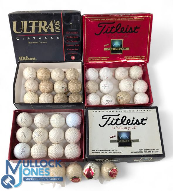 Selection of 40x Assorted dimple pattern and modern Golf Balls features 4x Merlin balls in wrappers - the remaining loose selection includes Penfold, Slazenger, Titleist, Dunlop etc