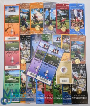 2005 & 2010 US Open Golf Championship Signed Tickets, 2005 a full set of tickets signed by winner Michael Campbell, 2010 7x tickets Monday-Sunday all signed by Graeham McDowell. Signatures personally obtained by a professional autograph hunter over many years