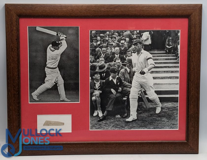 Walter (Wally) R Hammond Gloucestershire & England Cricket Autograph with modern photographs in action and walking to the wicket, well framed size 36cm x 46cm