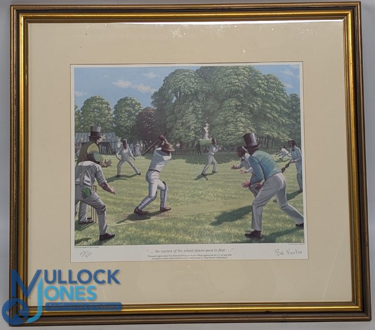 Robert Nicolson Cricket Print - The Captain of The School Eleven Went First, limited edition no. 42/850 framed and mounted under glass -size #59cm x 65cm