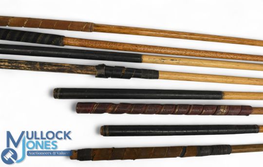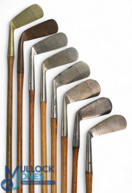 8x Assorted clubs incl 3x A Hunter matching rustless Scottie iron, mashie and putter, a Gibson and Co Holdfast mashie, rustless jigger, Geo. Charles L model 2 iron, and 2x putters; goose neck and wry neck showing a crown L model - 1x without grip