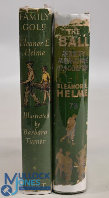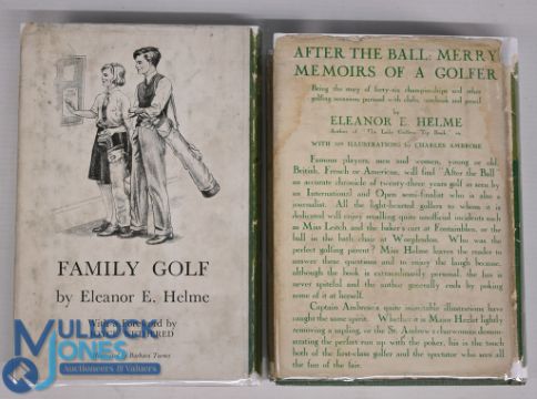 2x Golfing Hardcover Books by Eleanor E Helme to include Family Golf 1938 and After the Ball 1931, fair-good condition with some paper loss to dust jacket, foxing to end pages and edge