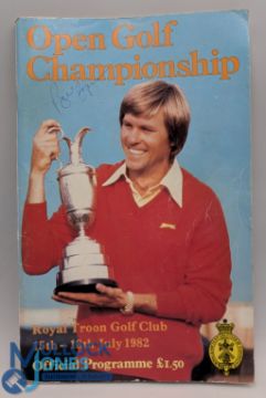 1982 The Open Golf Championship Royal Troon Golf Club multi signed Programme, with signatures of, Bill Rodgers, Ben Crenshaw, Tom Watson, Lee Travino, Jack Nicklaus, plus 3 unidentified signatures