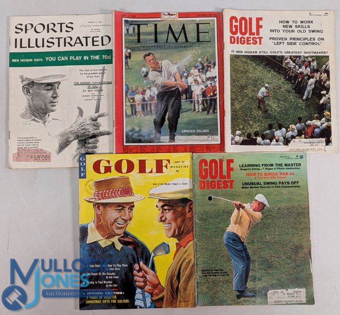 1957-1968 Golf Magazines, to include 1957 Sports Illustrated Ben Hogan cover, 1960 Time magazine Arnold Palmer cover, 1962 Jan golf magazine 1967 Sept Golf Digest 1968 Aug Golf Digest (5)