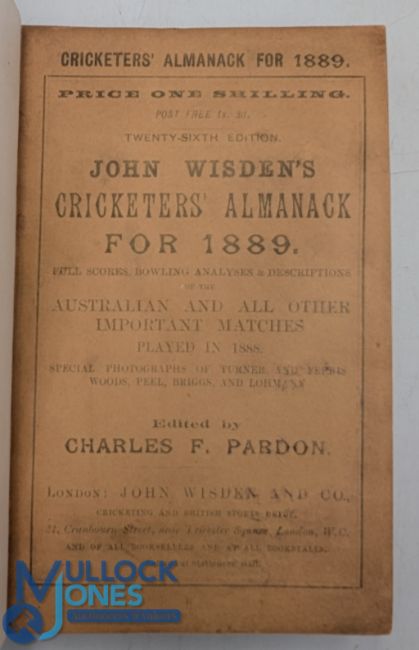 Wisden Cricketers' Almanack 1889 rebound in light brown cloth boards, having facsimile front and rear covers, contents clean and bright