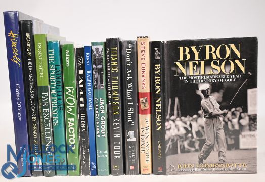 12x Golf Auto Biographies and Biographies to include Himself Christy O'Connor c1990 Seamus Smith, Breaking 80 The life and times of Joe Carr 2006 Dermot Gilleece, Par Excellence The Biography of Sir Michael Bonallack 2018 Donald Steel, The Sport of Prince's 1980 Laddie Lucas, The Wow Factor 2008 Barney Adams, Dapper the Adonis 2011 C.F Stewart, Ralph Guldahl 2016 Kevin Kenny, Jack Grout A Legacy in Golf 2012 Dick Grout, Titanic Thompson 2011 Kevin Cook, Don't Ask What I Shot 2007 Catherine M. Lewis, To Win and Die in Dixie 2010 Steve Eubanks, Byron Nelson The Most Remarkable Year in the History of Golf 2006 John Companiotte, all in very good condition with some small marks