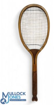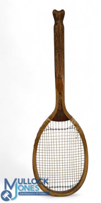 c1920 Slazenger Special Demon Fish Tail wooden Tennis Racket, restrung with nylon strings, in good clean condition